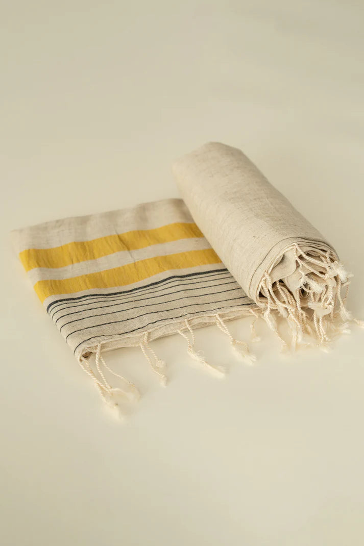 MYRA SAFFRON – Pestemal en lin et coton dans un chaleureux ton safran